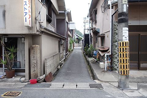 Y字路からさらに北へ115m進み、市立高屋幼稚園前を通過してすぐの所にある丁字路を左折。
