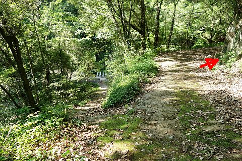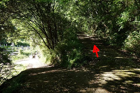 墓地へ下るY字路から北へ64m上る