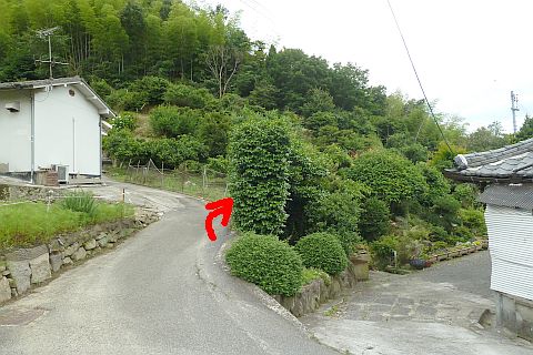 濵岡工機(有)の横の丁字路を右折し、南南東へ92m上る。