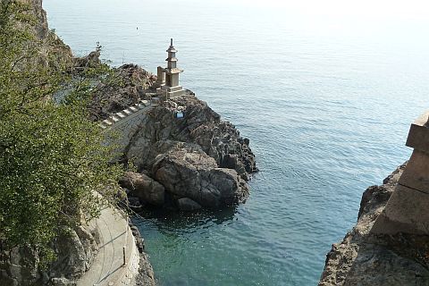 新四国38番金剛福寺 (三面千手観世音)<37番札所の西南西530m 阿伏兎観音堂の東25m>