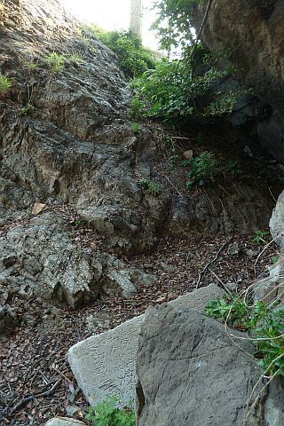 旧石殿の左側面の壁石(38番札所がある岩場の東に転落)
