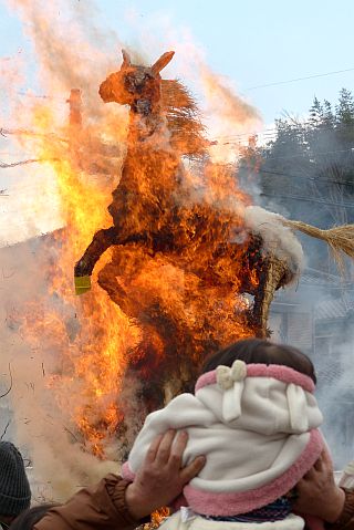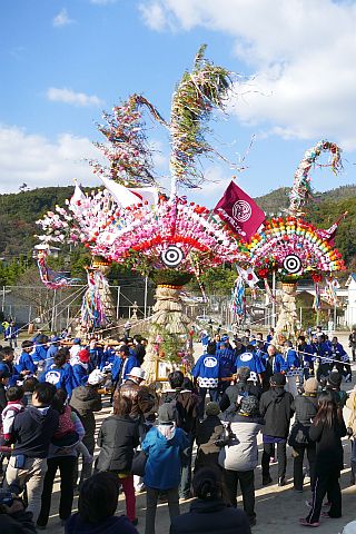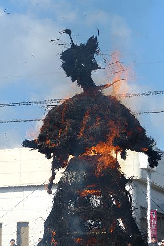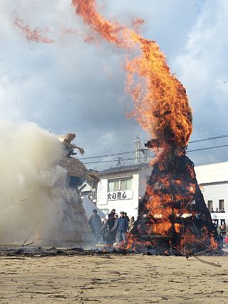 毎年1月第2日曜日に開催。「左義長」とも「三毬打」ともいう。以前は