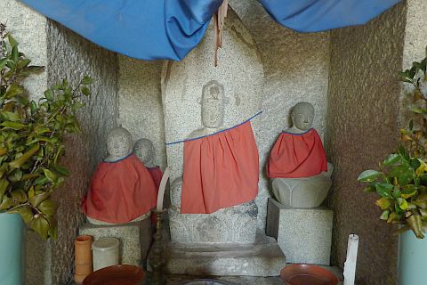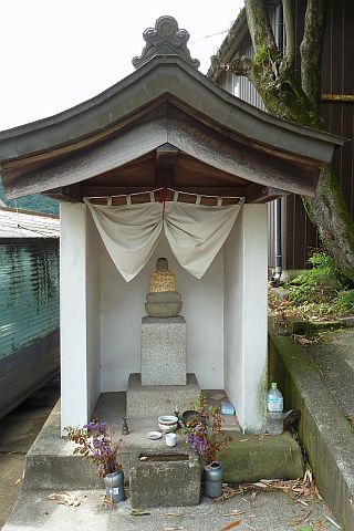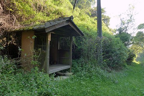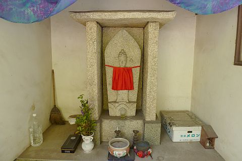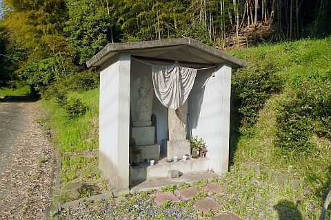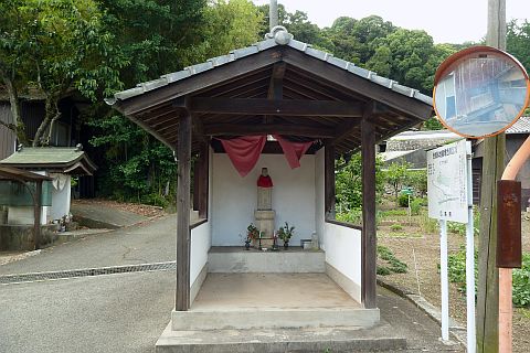 車道に戻り、地蔵堂前の十字路から南東へ80m進み、つきあたりの丁字路を左折