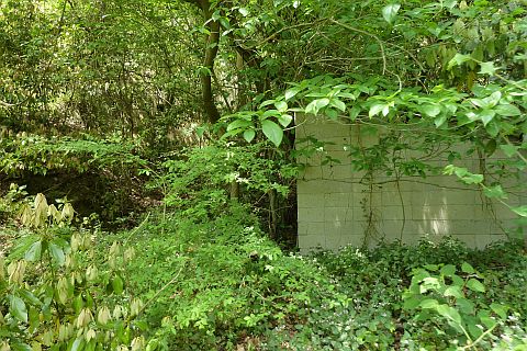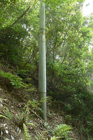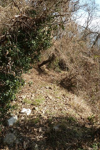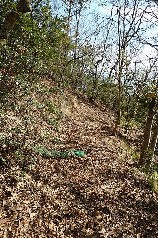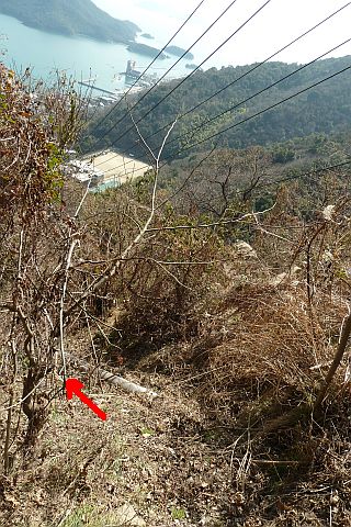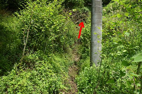 パイプがある所で左折し、パイプに沿って急坂を15m程下る