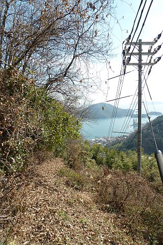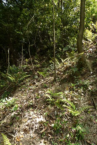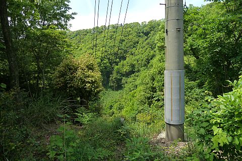 しかたなく電柱に沿って東南東へ100m程急斜面を直登することに。