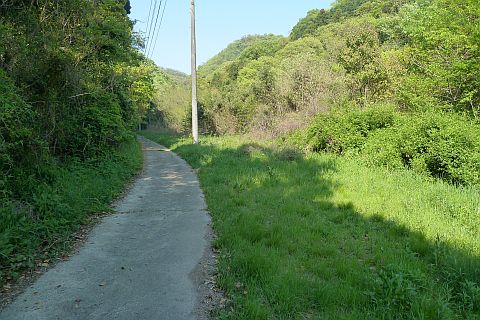 この辺りで右折して細道を南へ1.03km上って後山公園に出る予定だったが、