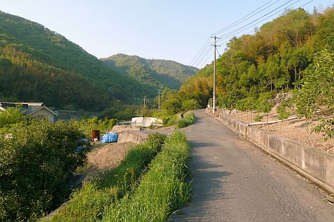 本谷川沿いの道を北へ142m進み、十字路を右折して東南東へ90m進む