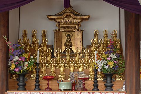 子安観世音菩薩坐像と三十三体の慈母観世音菩薩立像