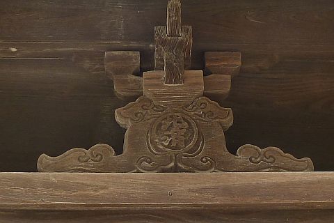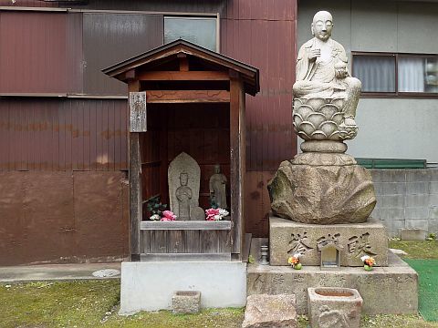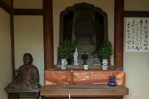 向かって右に愚谷和尚の椅坐像、左に釈迦堂守護神の椅坐像が安置されている。