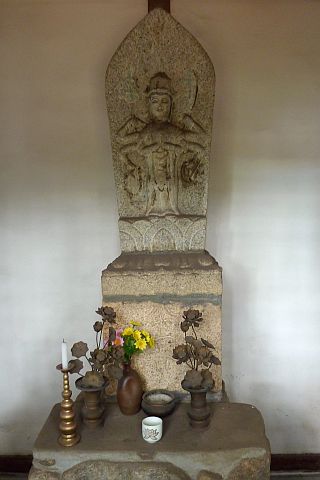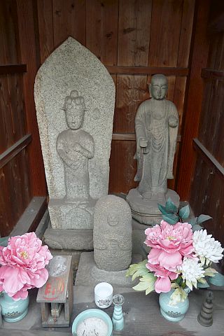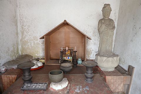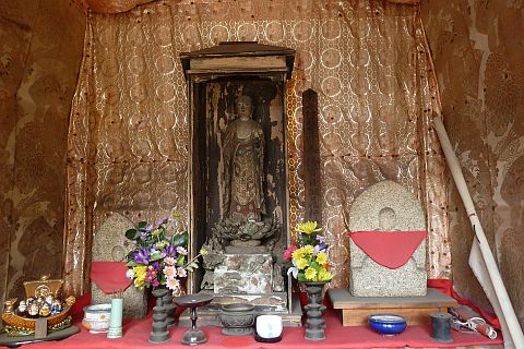堂内向かって左に白衣観世音菩薩坐像、左に地蔵菩薩立像