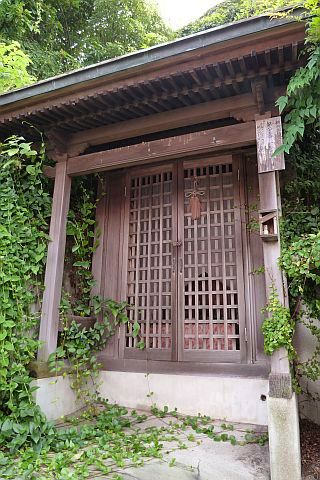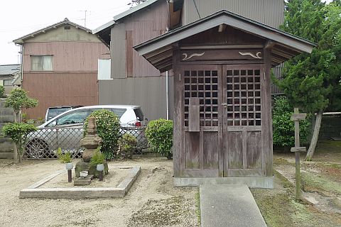向かって右のカイズカイブキの奥に新四国77番札所がある