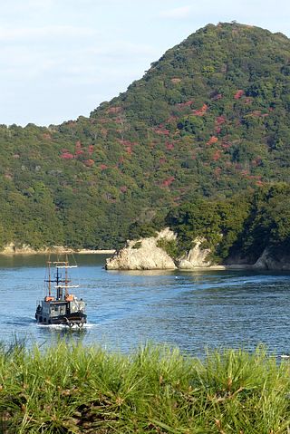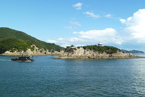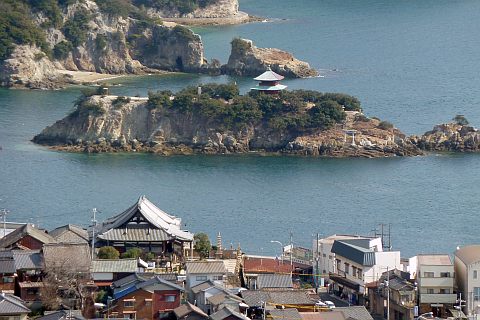 対潮楼から弁天島、仙酔島、皇后島を望む