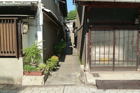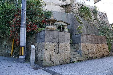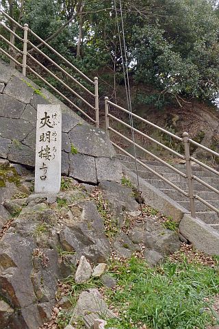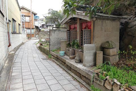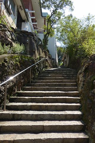 丁字路を右折し、細道を東へ20m進み、石段を東へ10m上る。