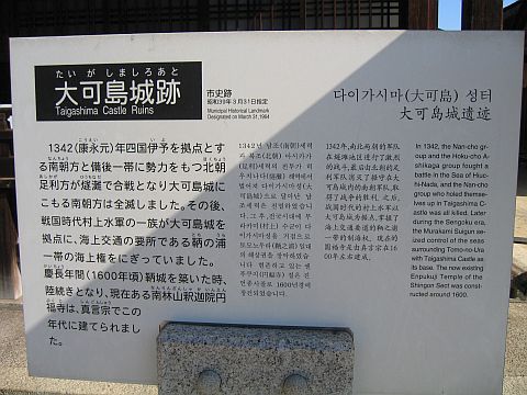 此所大可嶋城に居住す 天正(1573~1592年)の頃 毛利候の臣 村上助康 鞆城主となり居住す