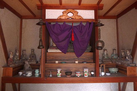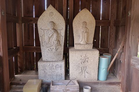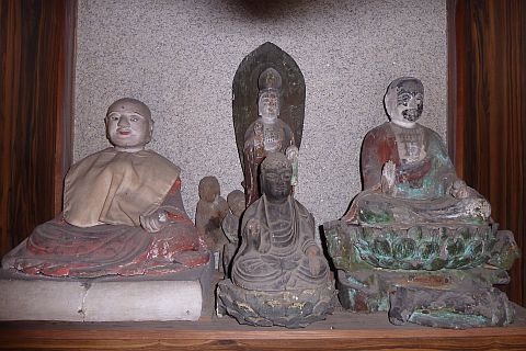 向かって左にある弘法大師坐像は右手に念珠、左手に五鈷杵を持っている珍しい像。