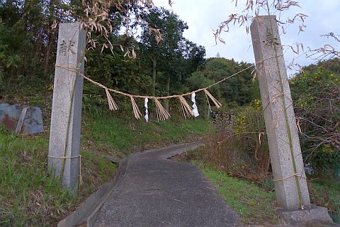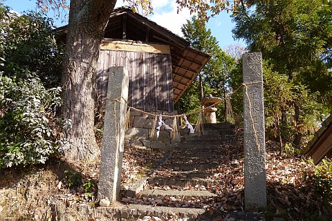https://goo.gl/maps/kzS7rUjvw6T2石鳥居の前から参道を南西へ15m上る
