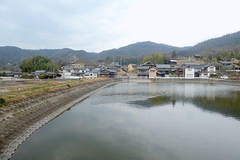 徒歩・自転車の場合は山ノ奥池の土手道を南へ進み、つきあたりを右折。