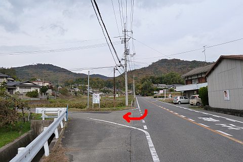 県道を西へ232m進み、十字路を右折。南南東へ187m進む。