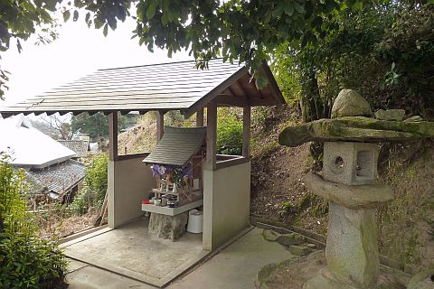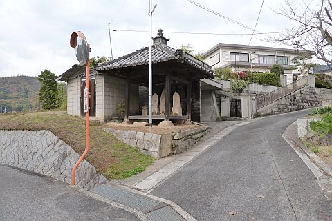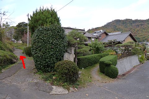 4番札所前から車道を西へ36m進み、左折して墓地への参道を西南西へ13m上る