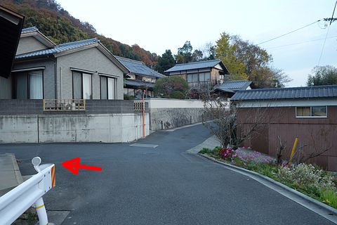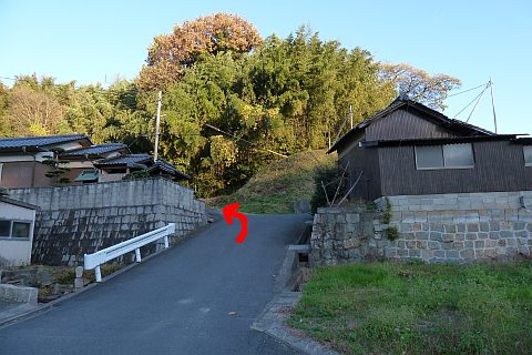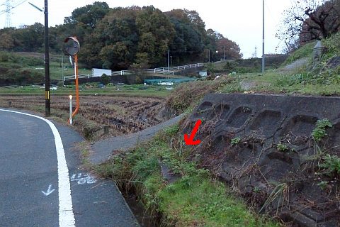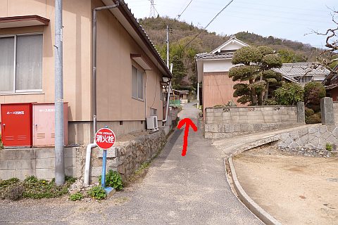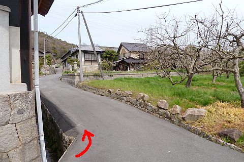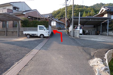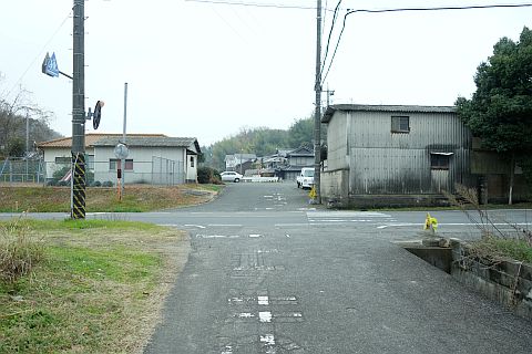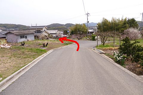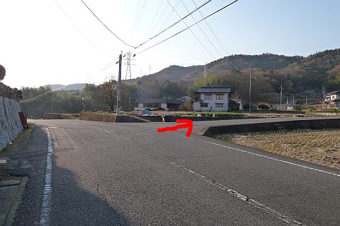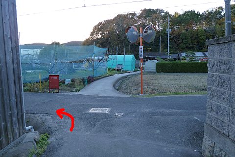 県道の十字路に戻り、北へ47m進んで丁字路を左折。