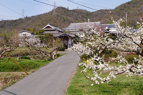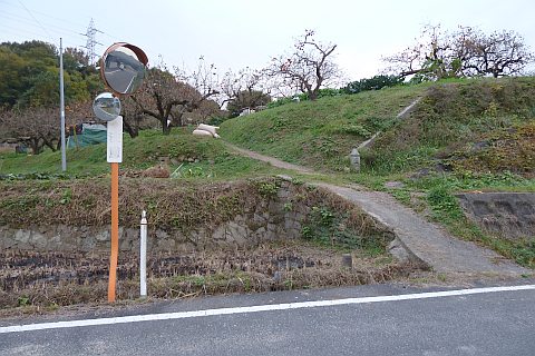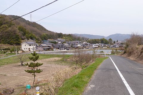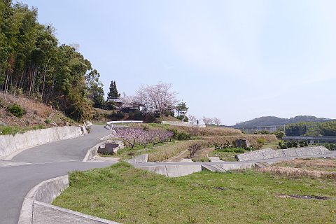 阿弥陀堂前から南へ112m下り、県道60号線に出て左折。東へ178m進む。