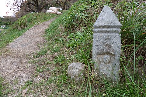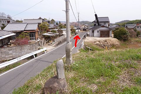 https://goo.gl/maps/4WAkaAFQUzu自然石地神の前から東へ112m進んで丁字路に戻り、さらに東へ86m進む