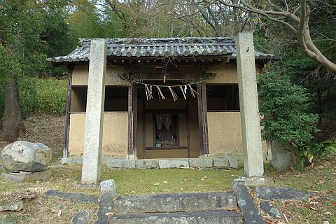 「鴨方町誌(pp.202-205 1955年)」に記されている末社は牛頭天王、甕神(もたいがみ)、