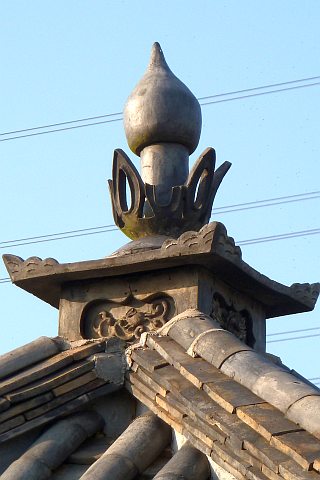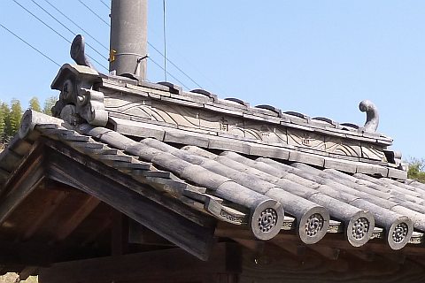 棟込瓦には「南」「無」「蓮」の文字が刻まれている