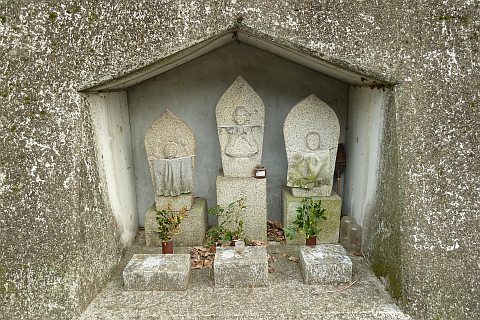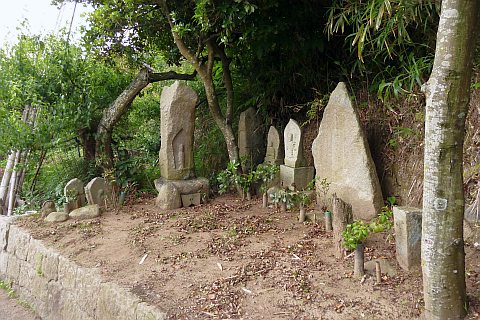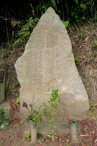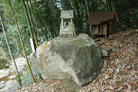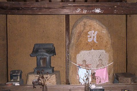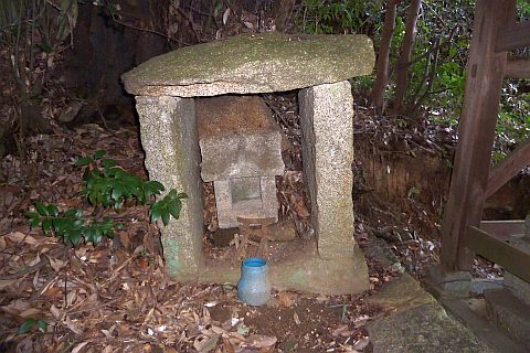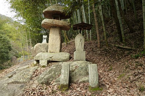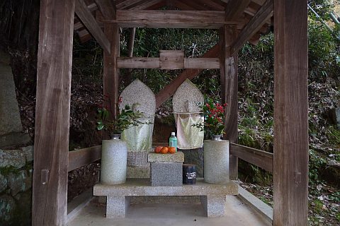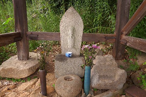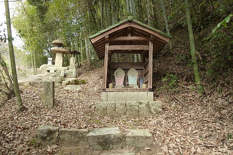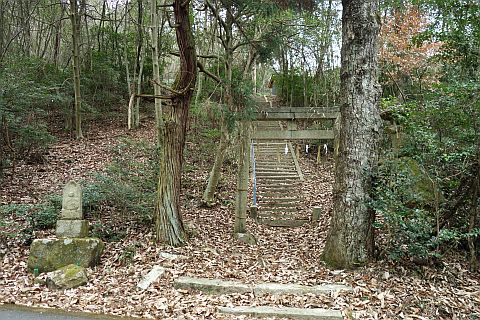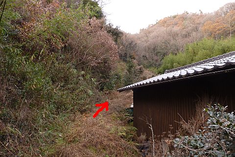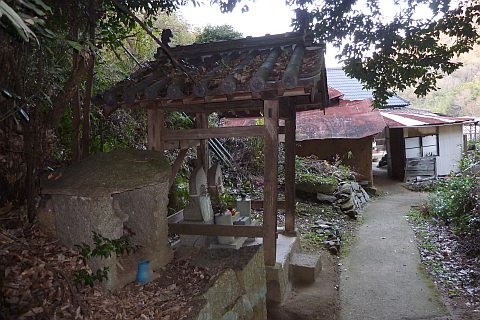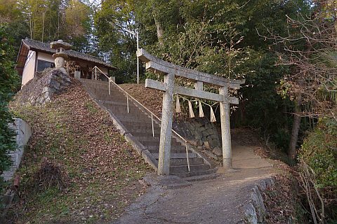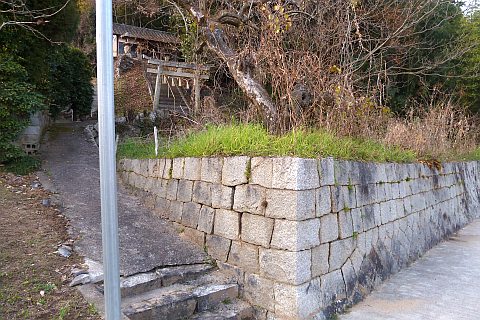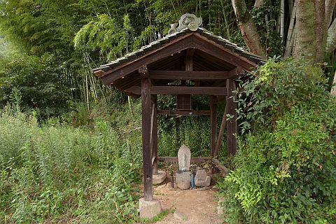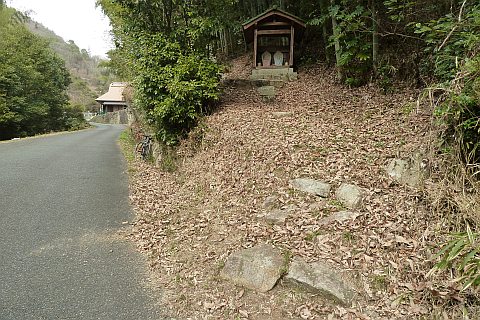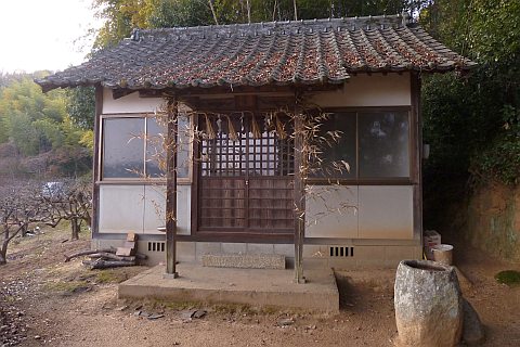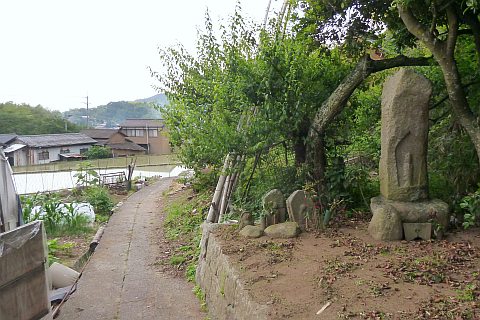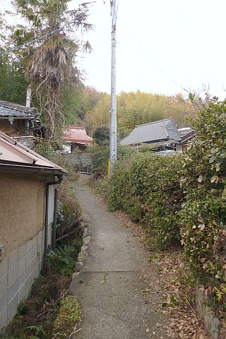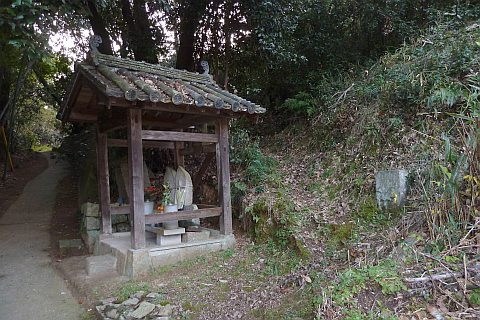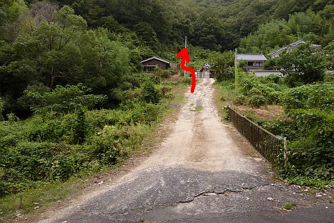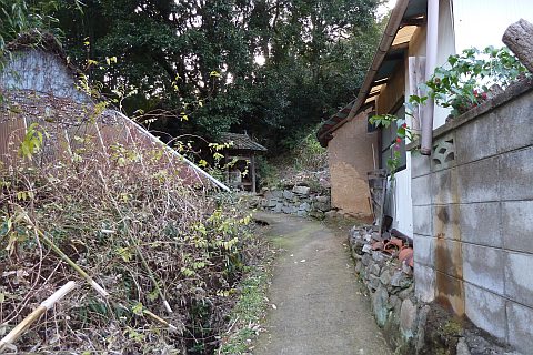 民家の脇の細道を北へ16m進み左折。未舗装の参道を西へ40m進む。