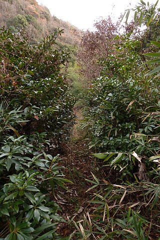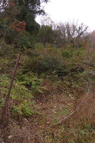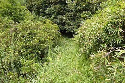 大林谷の山際の畑道を北西へ100m程上る。人通りがないので雑草に覆われている。