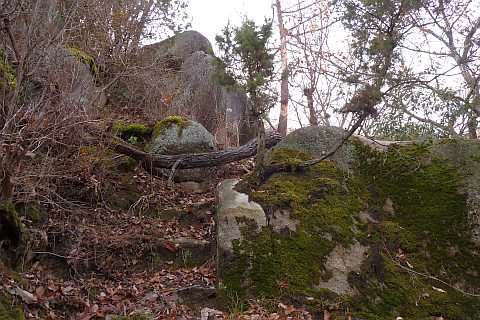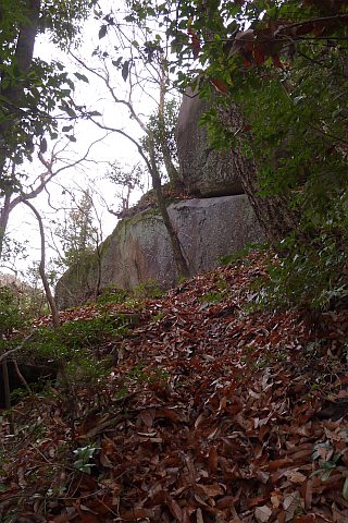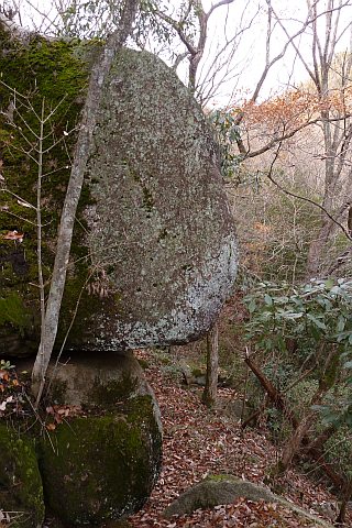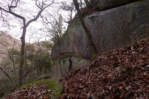 巨石の横を一周するように進む
