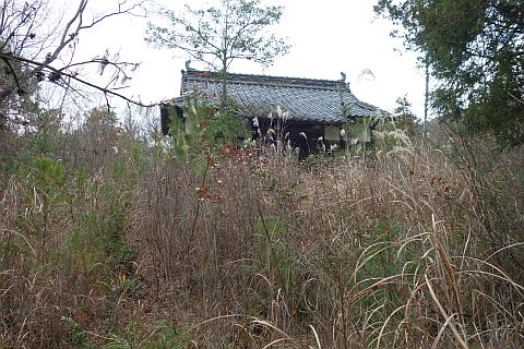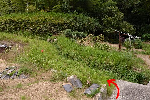 境内は雑草に覆われている。茨があるので要注意。