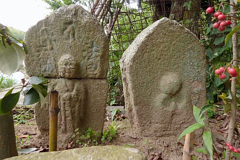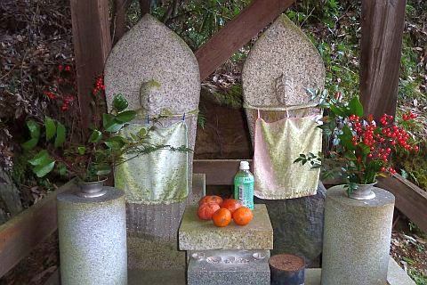弘法大師坐像と大日如来坐像の二尊石仏