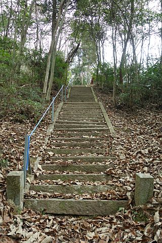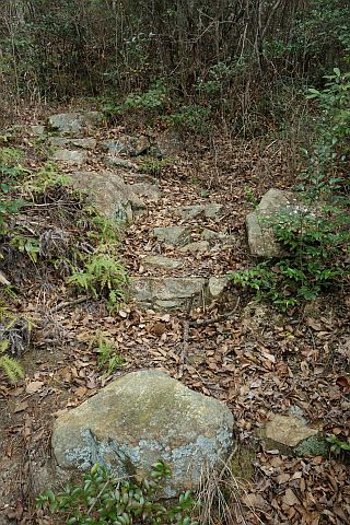 60m程続く石段を上った先は山道。