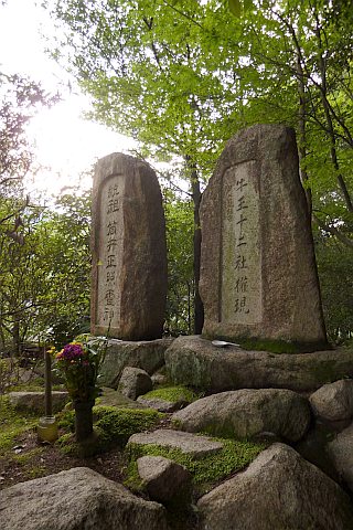 筒井一統鎮守牛王十二社權現と統祖筒井正照*靈神(霊神)の石碑