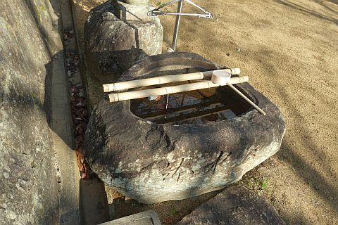 手前に置かれている水鉢の正面に「十九○」と刻まれている