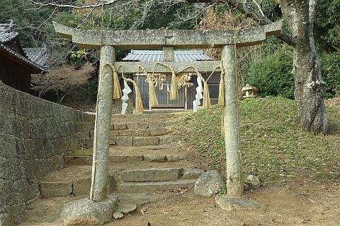十字路を右折して細道(軍神社への参道)を北東へ32m上る