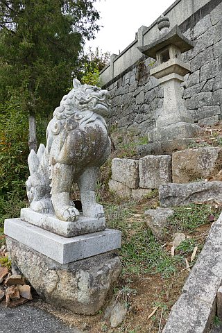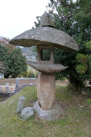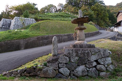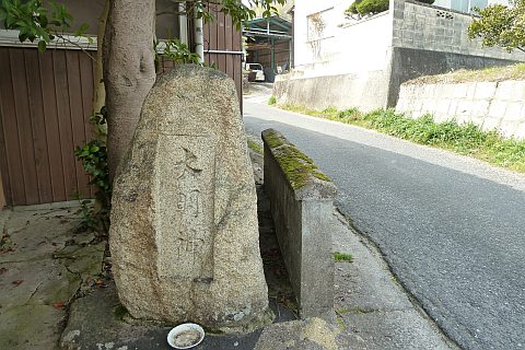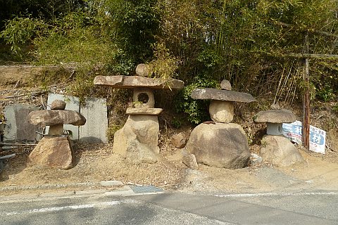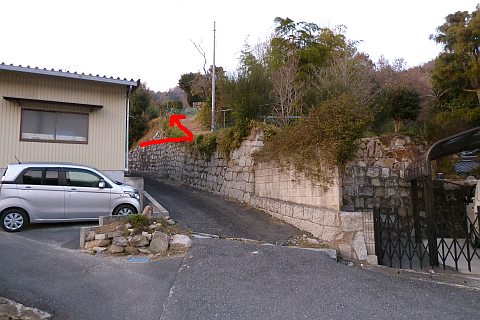 徒歩の場合は自然石の燈籠の横から東へ50m程下って車道に下る