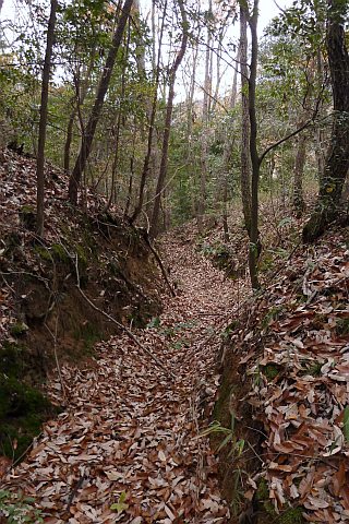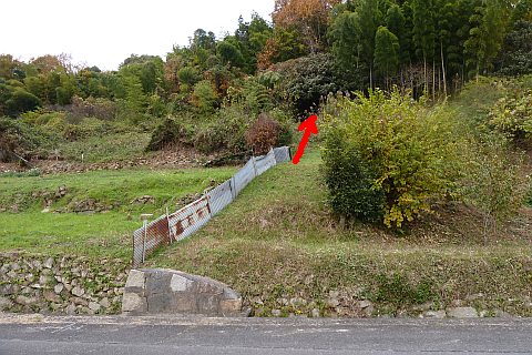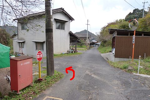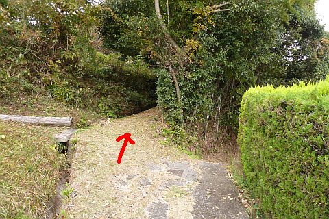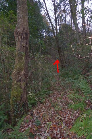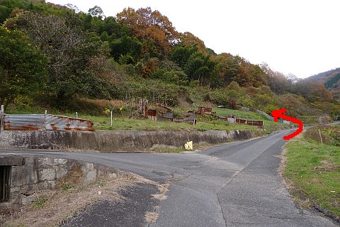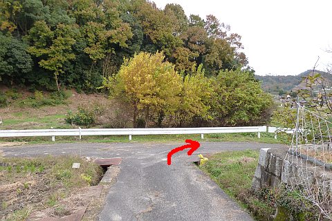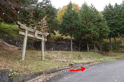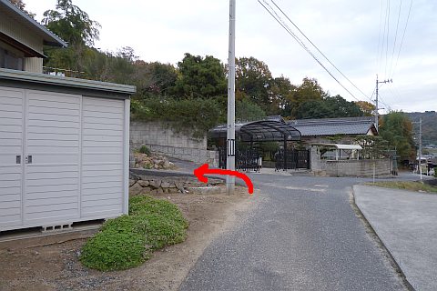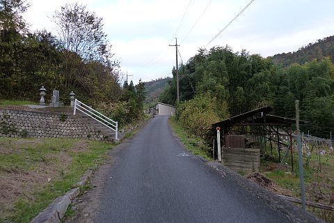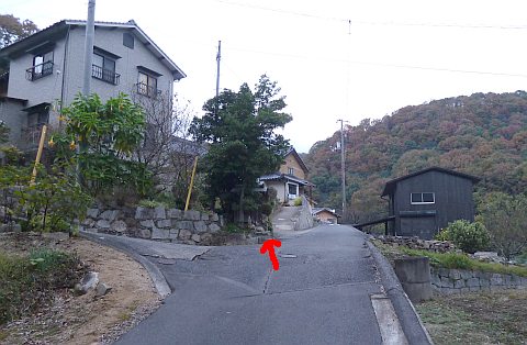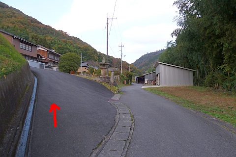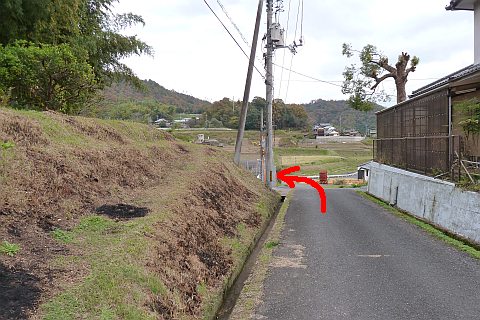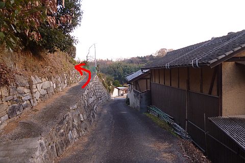 右へ大きくカーブする所で右折し、山道を南へ115m程上る