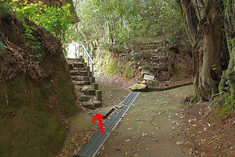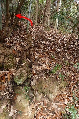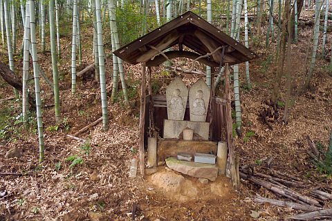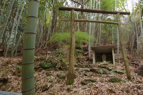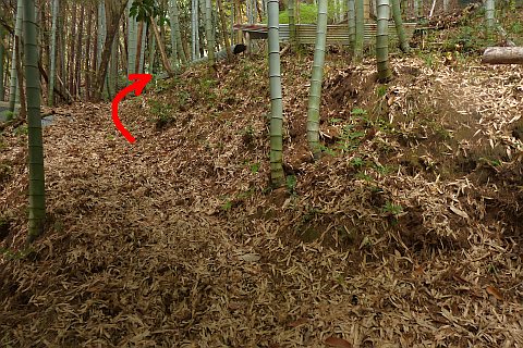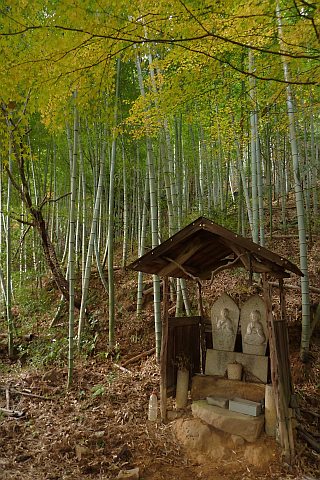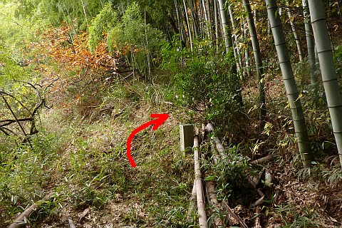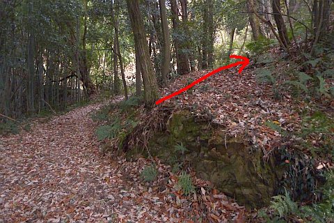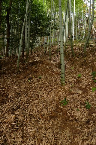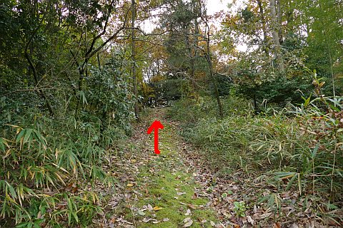 百度石の前の丁字路を右折し、竹林の中を北へ30m程上る。