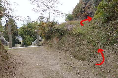 墓地への参道を東南東へ15m上り、左折して北へ84m上る