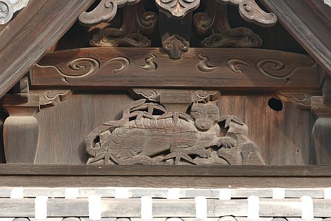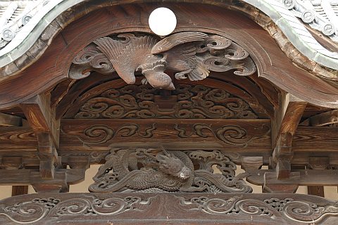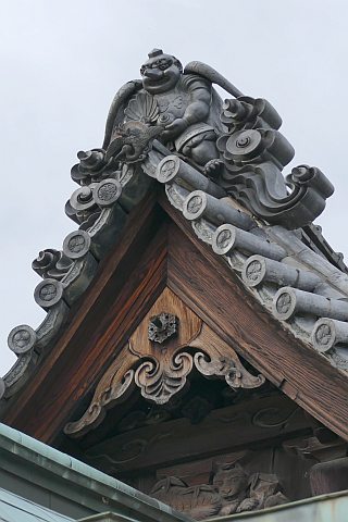 お堂の大棟の棟込飾り瓦には波間の兎(因幡の白ウサギ)がデザインされている