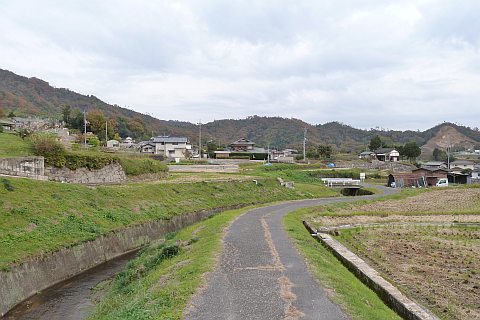 曲田地区から吉宗地区へ下る曲田川沿いの道の脇