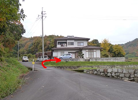 十字路を左折し、県道を北へ北北西へ30m上って右折