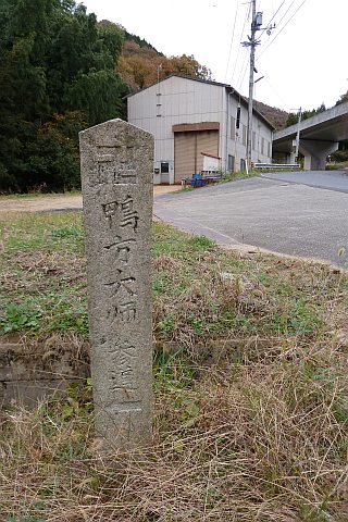 道しるべの前の交差点から県道64号線を南西へ430m下って丁字路を右折。