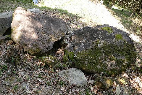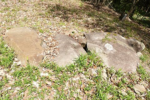 入り口 天井石 長六尺八寸(約206cm) 幅三尺七寸(約112cm) 厚二尺八寸(約85cm) 南面