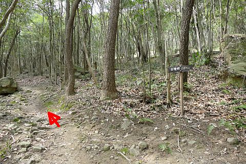 吉備中山の三角点から東へ70m下った所