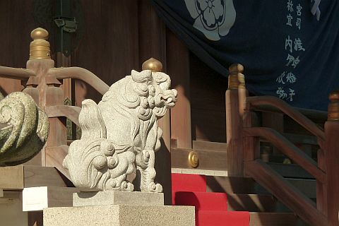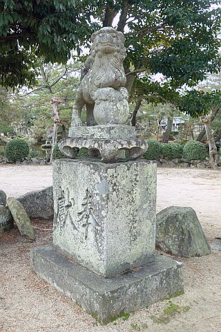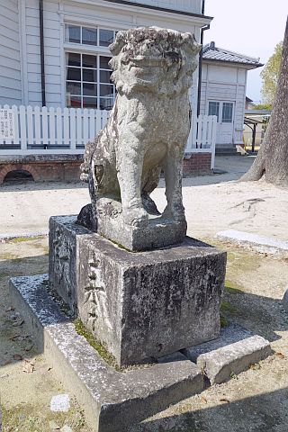 木像の側に古きこま犬あり