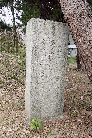 逝 葬于先塋之次 距生文政十二年(1829年)三月八日 享年四十有七 配(つれあい)平田氏 一男諱安家稱